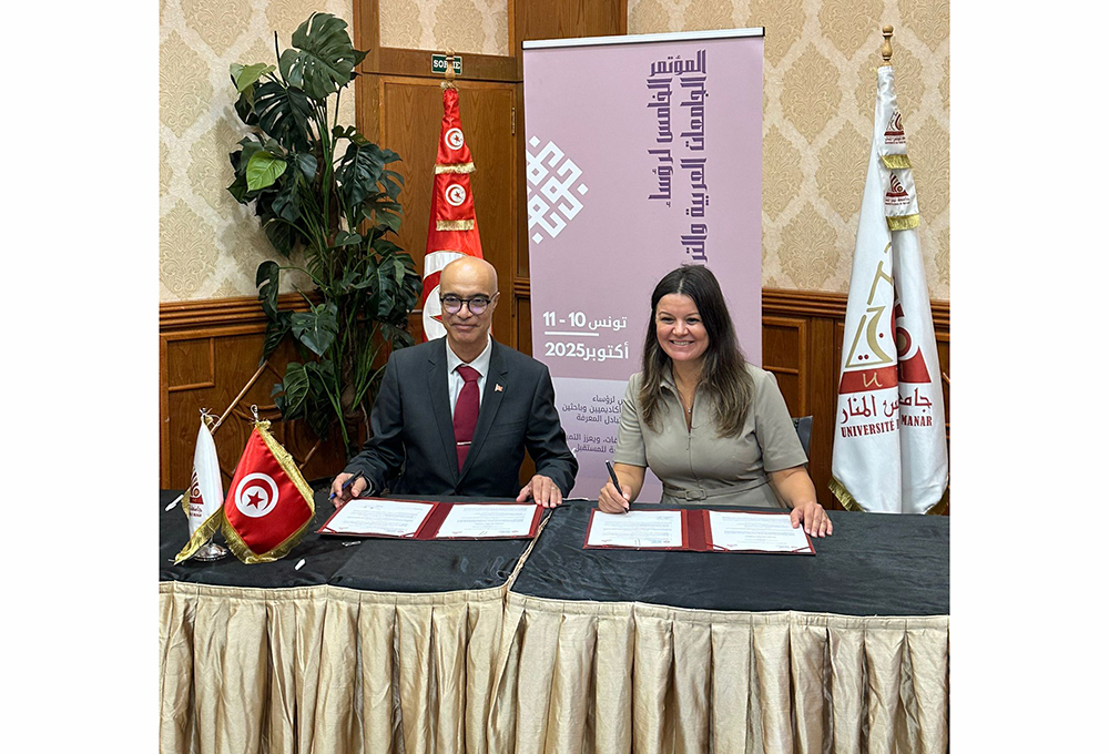 The 5th Congress of Turkish-Arab University Rectors, held at Al-Manar University in Tunisia from October 10-11, 2025, in collaboration with the Union of Arab Universities and the Eurasian University Union. The President of the Council of Higher Education (YÖK) Prof. Dr. Erol Özvar also participated. Our university was represented by our Vice Rector, Prof. Dr. Burcu Yavuz Tiftikçigil, and Levent Ersezgin, a specialist in our International Office at the subsequent Turkish Universities Promotion Fair on October 12, 2025. Numerous universities and representatives from Türkiye participated in the congress. Connections were established with Al-Manar University and its representatives, and programs offered to prospective Tunisian students.